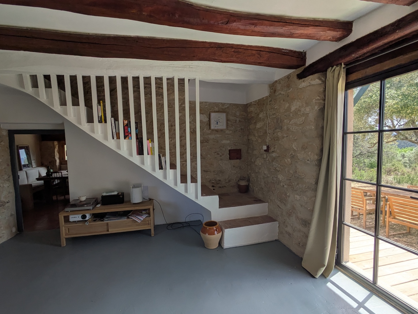 A seperate studio sits at the far end of the house. It has been used for painting and yoga, with its own entrance, WC and shower room. It could easily be converted into a two-bedroom unit with kitchen and living space. This work is included in the sale price and can be carried out on request, or the space can remain as is with a price reduction.